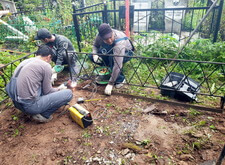 Первым делом мы принялись за уборку: убрали с территории места захоронения абсолютно всё, включая выложенную заказчиком плитку, памятники, а также сорную траву.